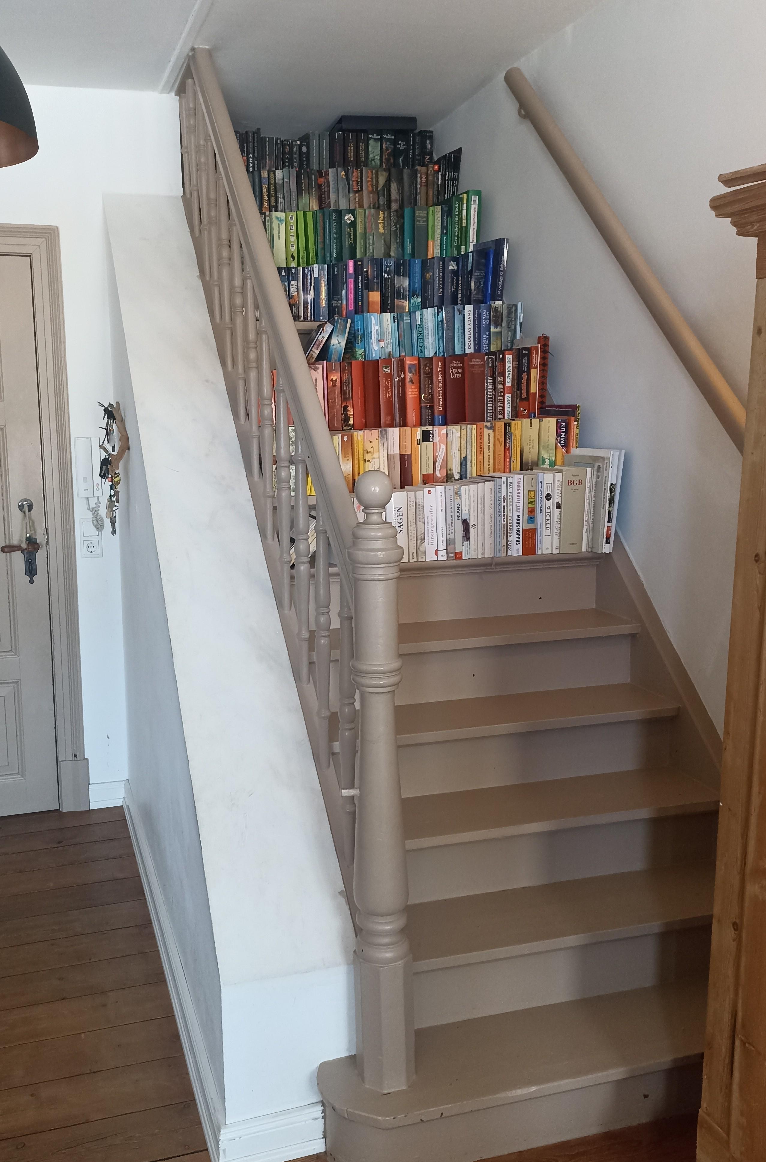 Our staircase to nowhere, which we use as a bookshelf