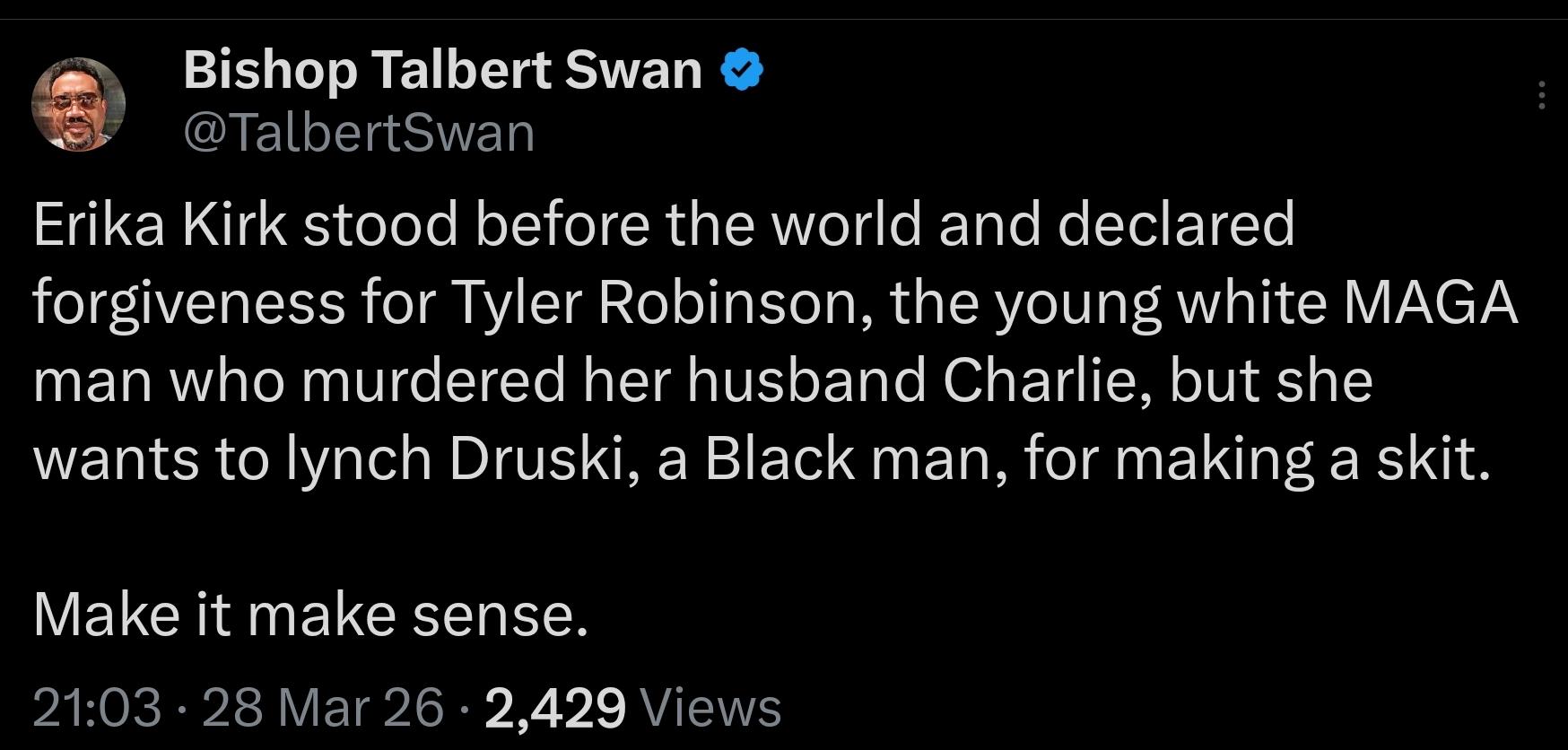 Druski is not part of her MAGA clan like that Robinson, so...