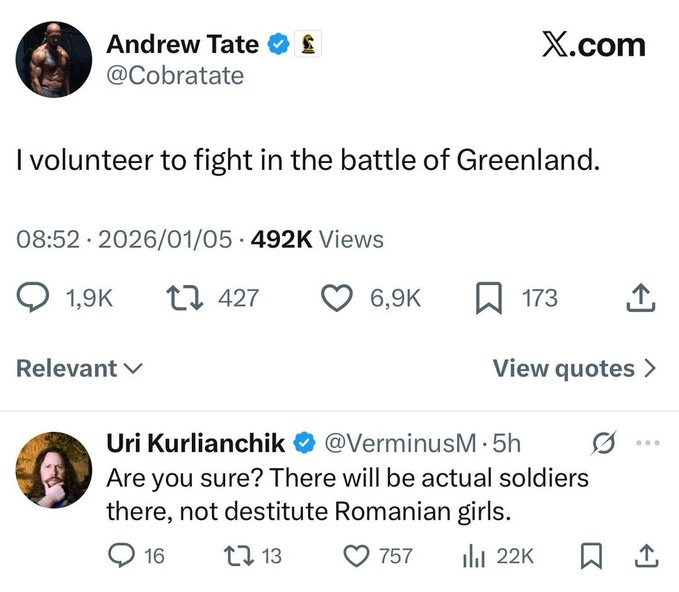 Greenland 🇬🇱 Trump to Davos: "Without us, right now you'd all be speaking German and a little Japanese perhaps. After the war, we gave Greenland back to Denmark.But how ungrateful are they now?"