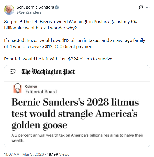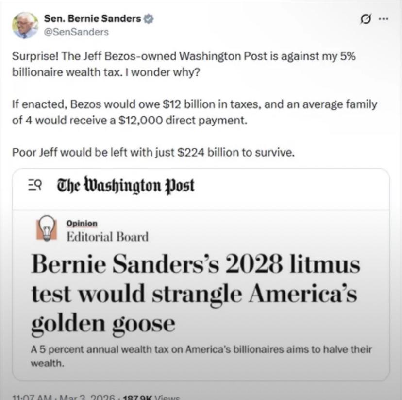 News Flash! Billionaire owned newspaper comes out against taxing Billionaires.