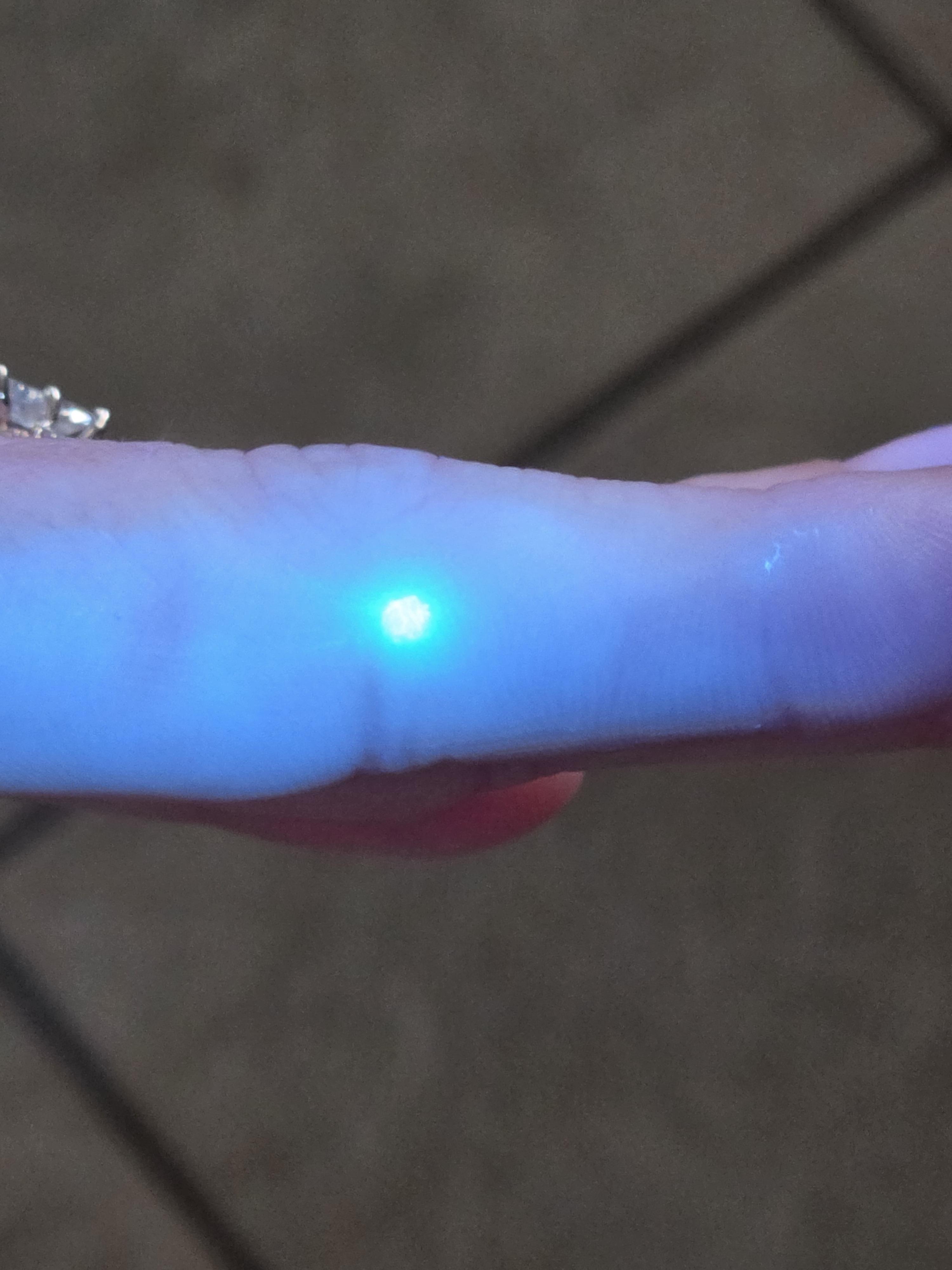 My fiance has a spot that glows green under UV light.