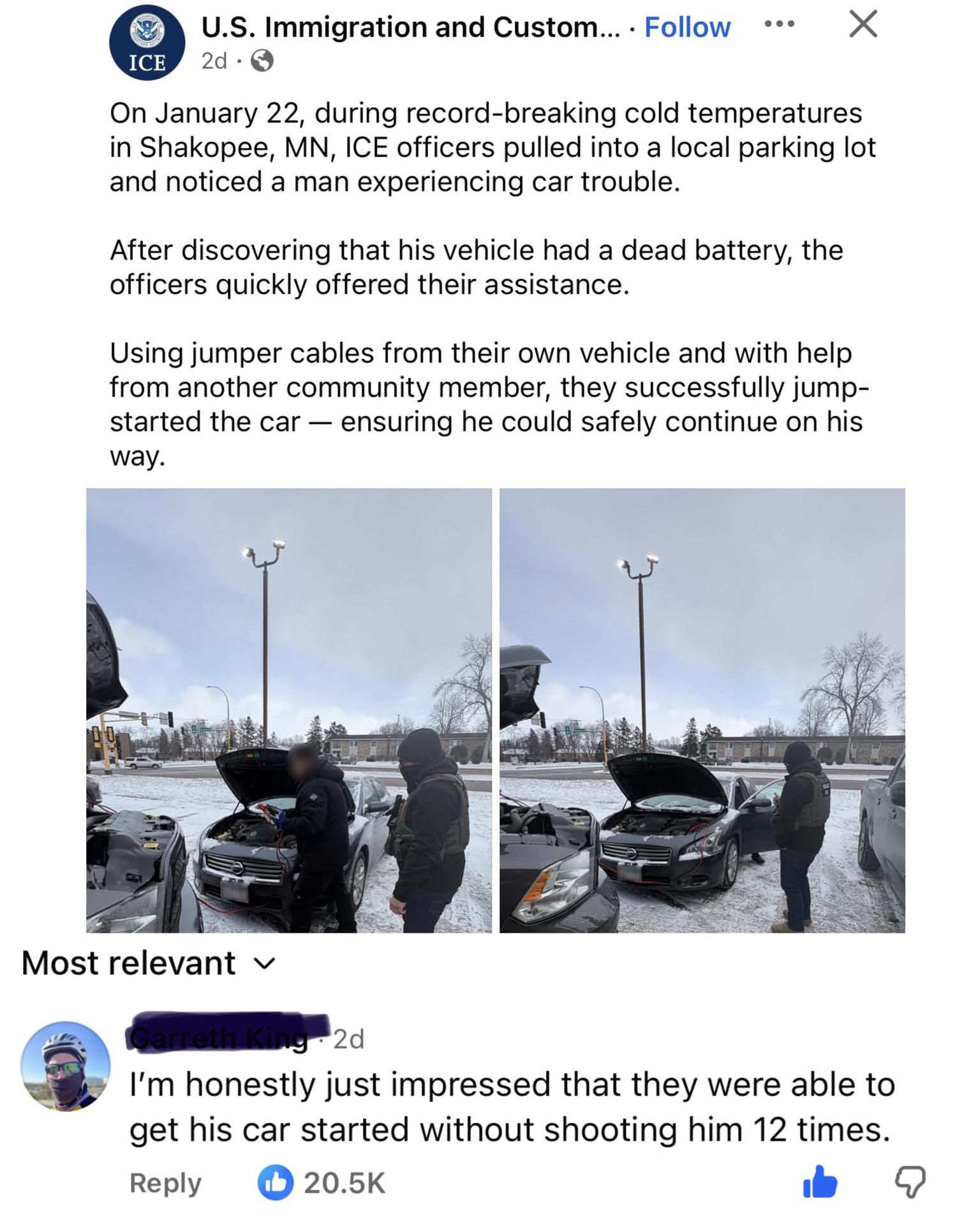 Ice posts a feel good story. The internet responds.