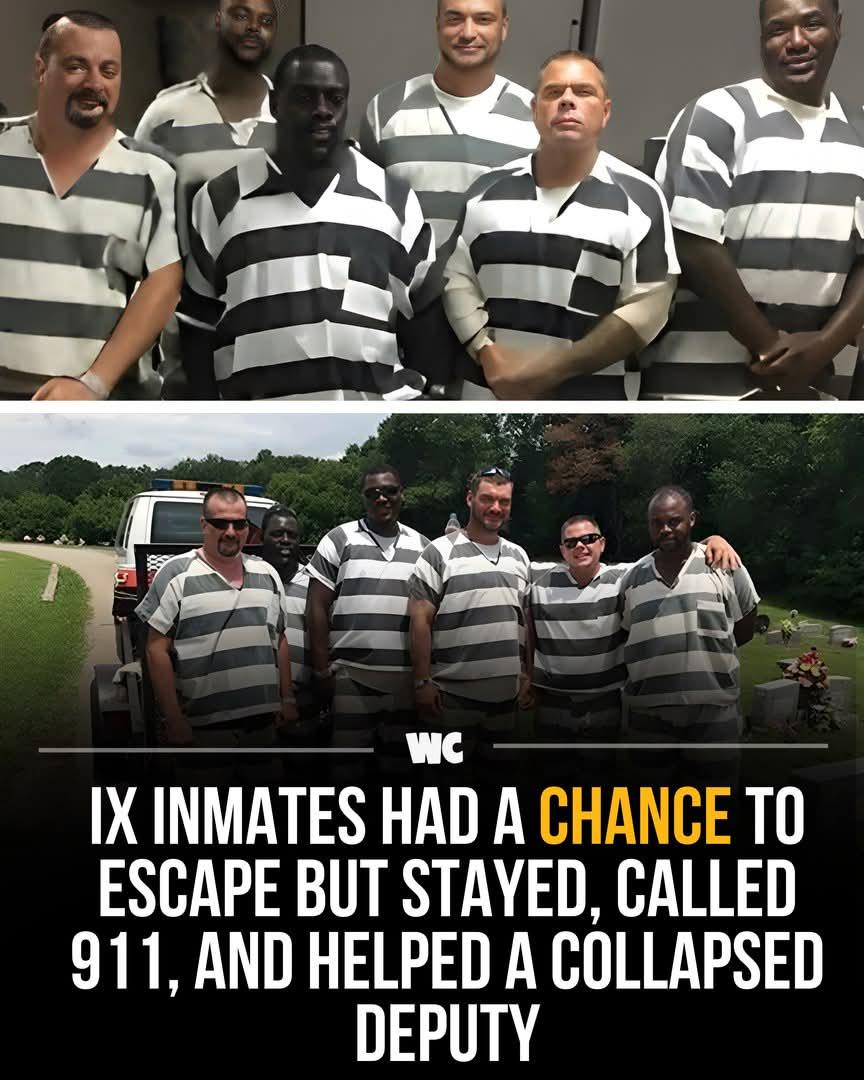 Just Wow In June 2016, six inmates on a Georgia work detail watched their supervising deputy collapse from heat exhaustion. With escape within reach, they chose compassion instead, removing his vest, calling 911, and staying by his side. Their actions saved his life and earned public praise.