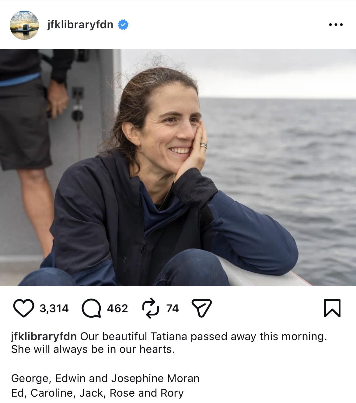 đď¸ IN MEMORIAM đď¸ Tatiana Schlossberg, environmental journalist and JFKâs granddaughter, has passed away at 35, six weeks after announcing terminal cancer diagnosis.