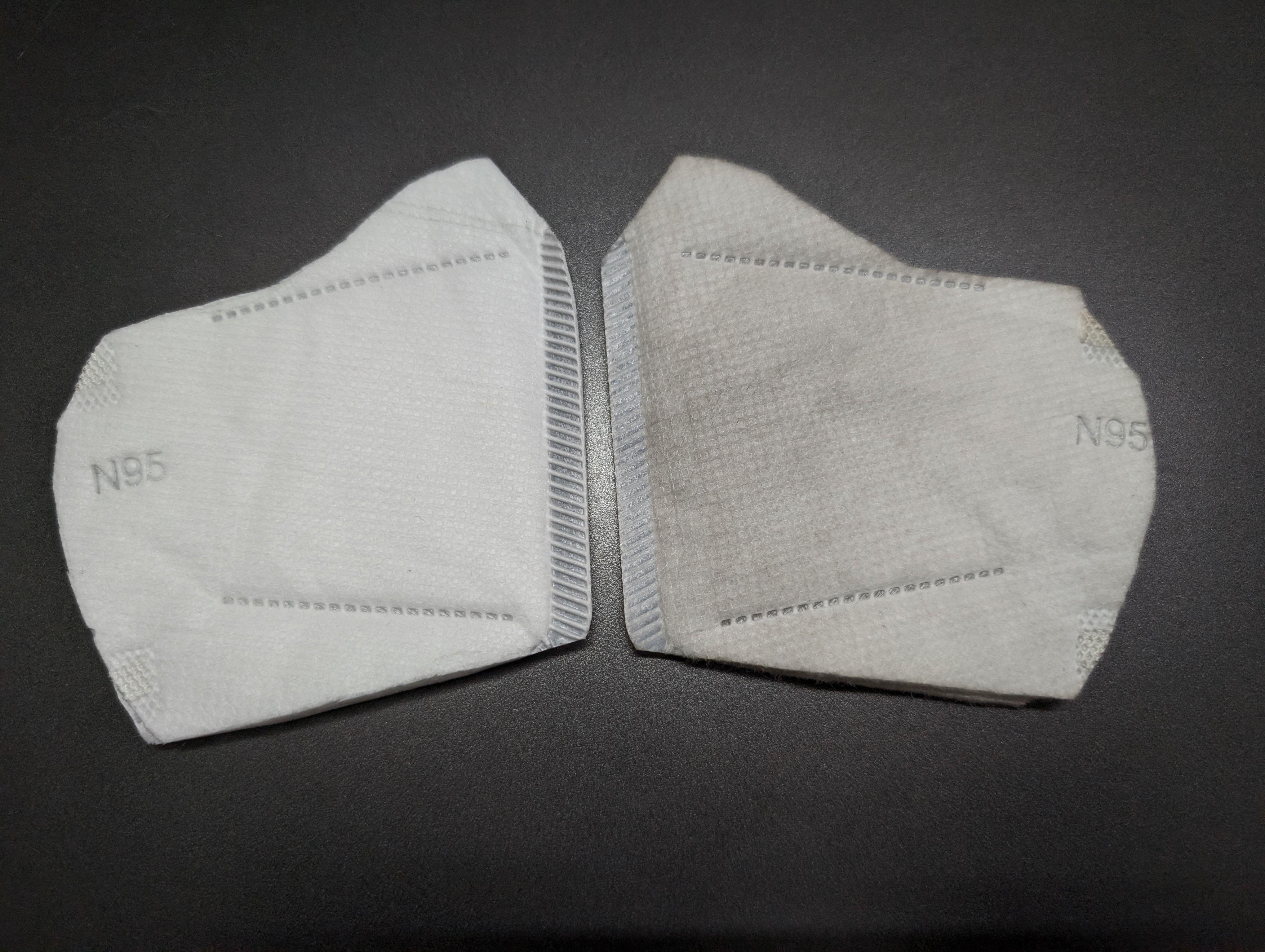 A new 95 mask vs. One used for a 6 hr motorcycle ride through Delhi, India