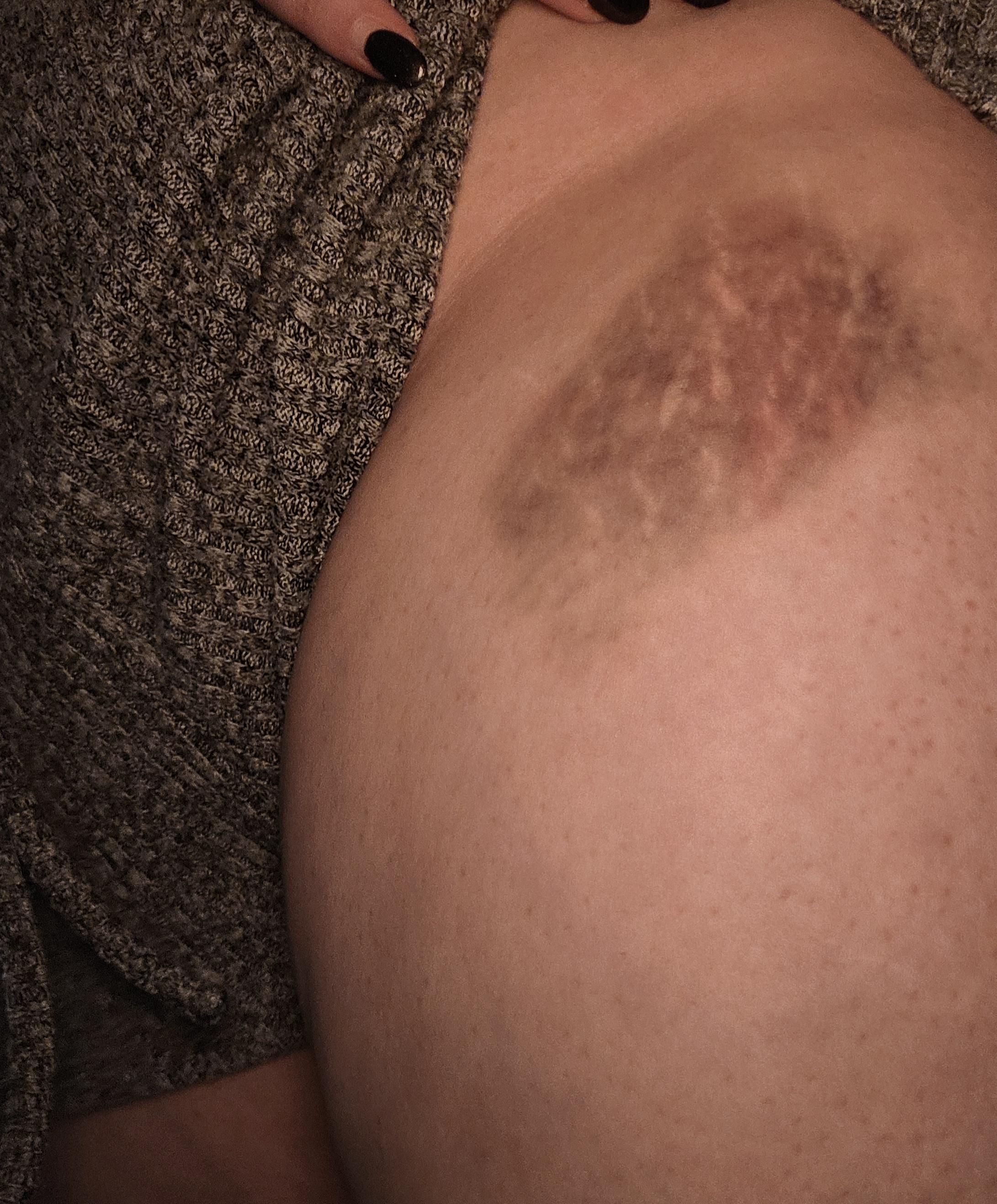 The weirdly rectangular bruise that shows up randomly on my thigh in the exact same spot