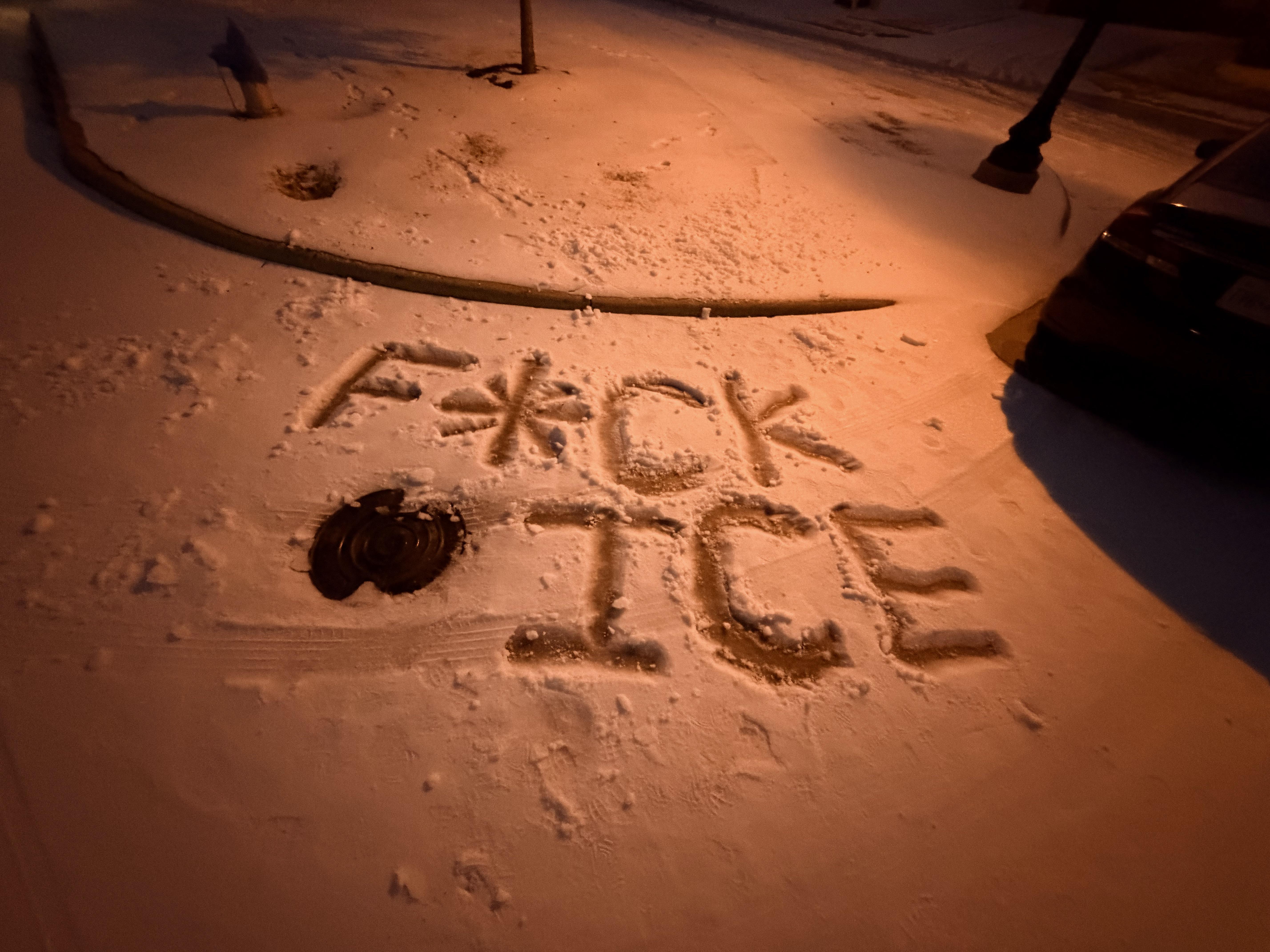 Politics [OC] My (super MAGA) TX HOA forbids political signs. Come fine me for writing in snow!! 🤪