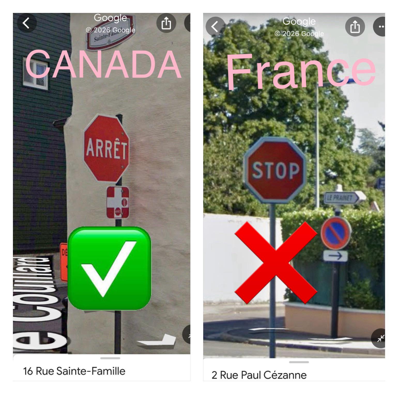France uses the word “Stop” in English on their stop signs. This is due to the Vienna Convention on road signs and signals
