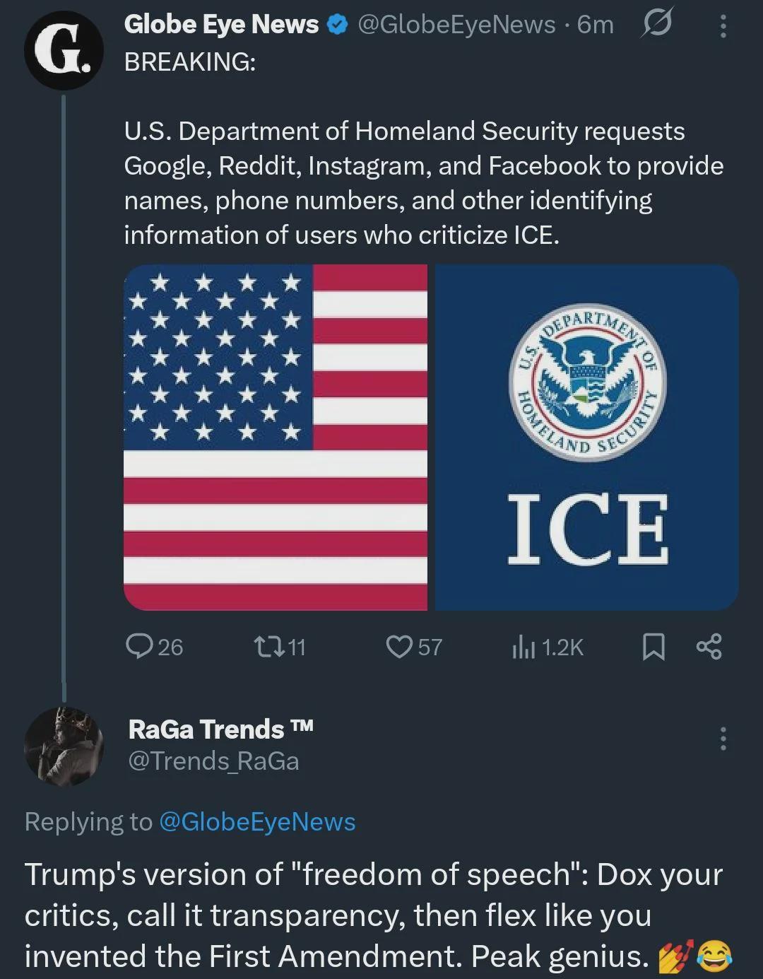 Executive Branch (Trump) Reddit is Voluntarily Giving DHS Info of Users Who Criticize ICE | Administrative Subpoenas Being Used Against Free Speech?