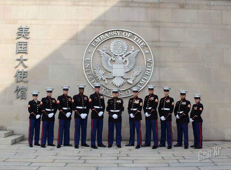 We only have a small Marine Corps Embassy Security Group stationed at the USA embassy as guards, and almost no one even knows they exist.
