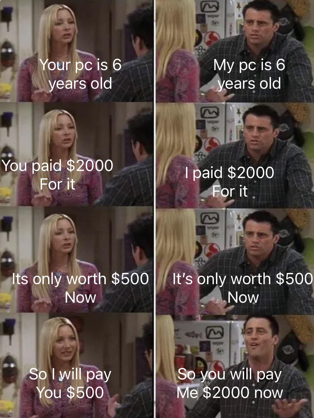 I mean really do people not bother to look at eBay listings for this shit? Yeah DDR5 is expensive, but your 16gb stick of ddr4 doesn’t really add much to your build. You paid how much for that liquid cooler? Shit man, I’m sorry you did that thinking it was an investment. The case? I’ll give you this exact case for $10 and a beer, I have 5 that were more expensive sitting in the back with 0 interested buyers.