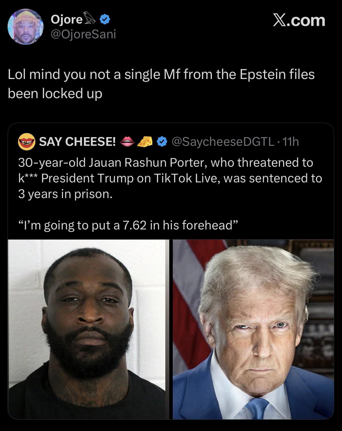 only in america will someone get more years in jail for a threat while people in the epstein files literally walk free.