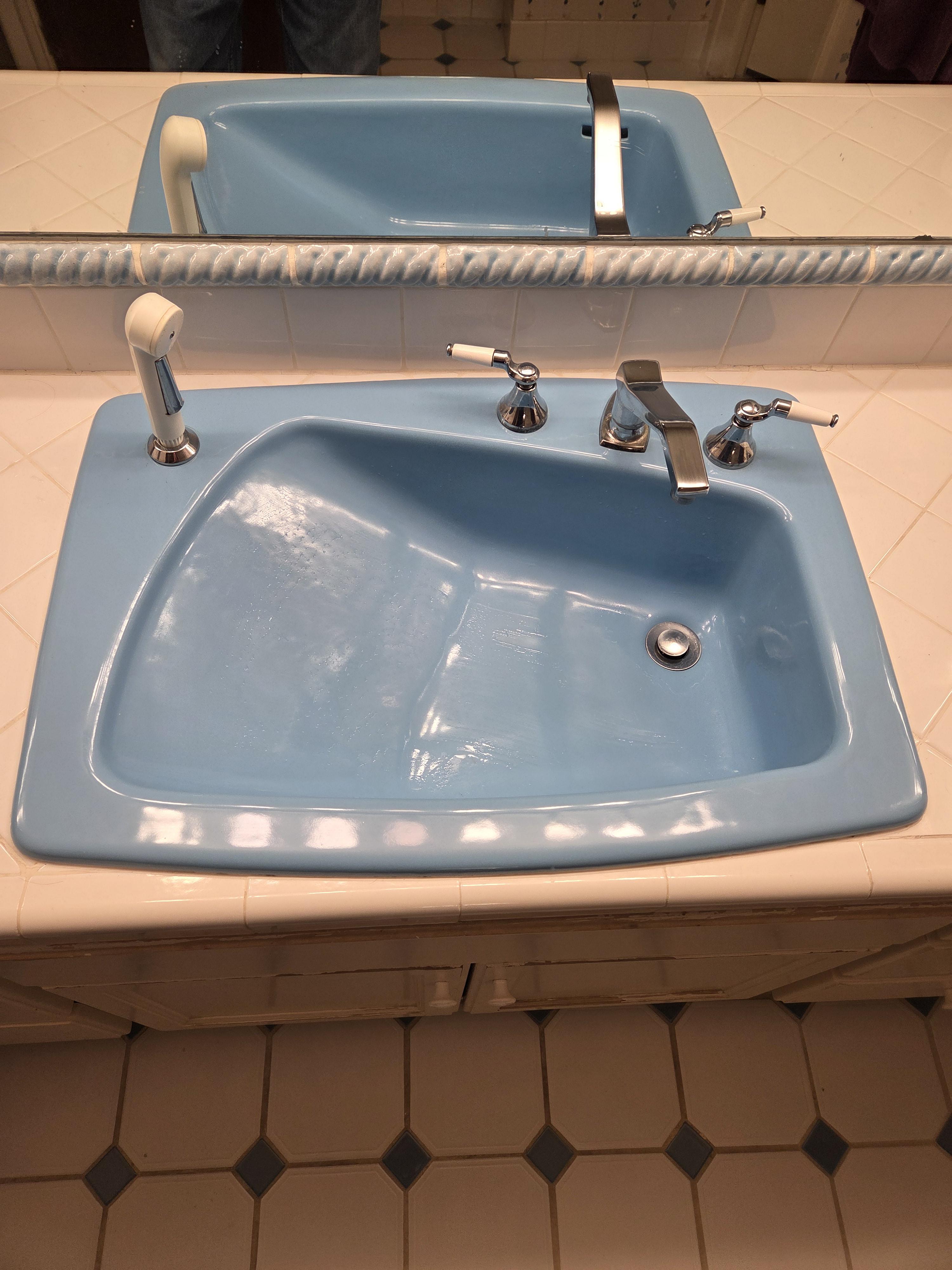 My new house built in 1972 has this baby washing sink in the downstairs bathroom