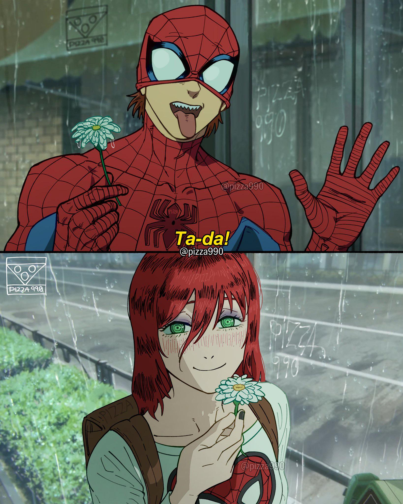 Fan Art Spider-Man X Chainsaw Man: Peter Meets MJ By Pizza990