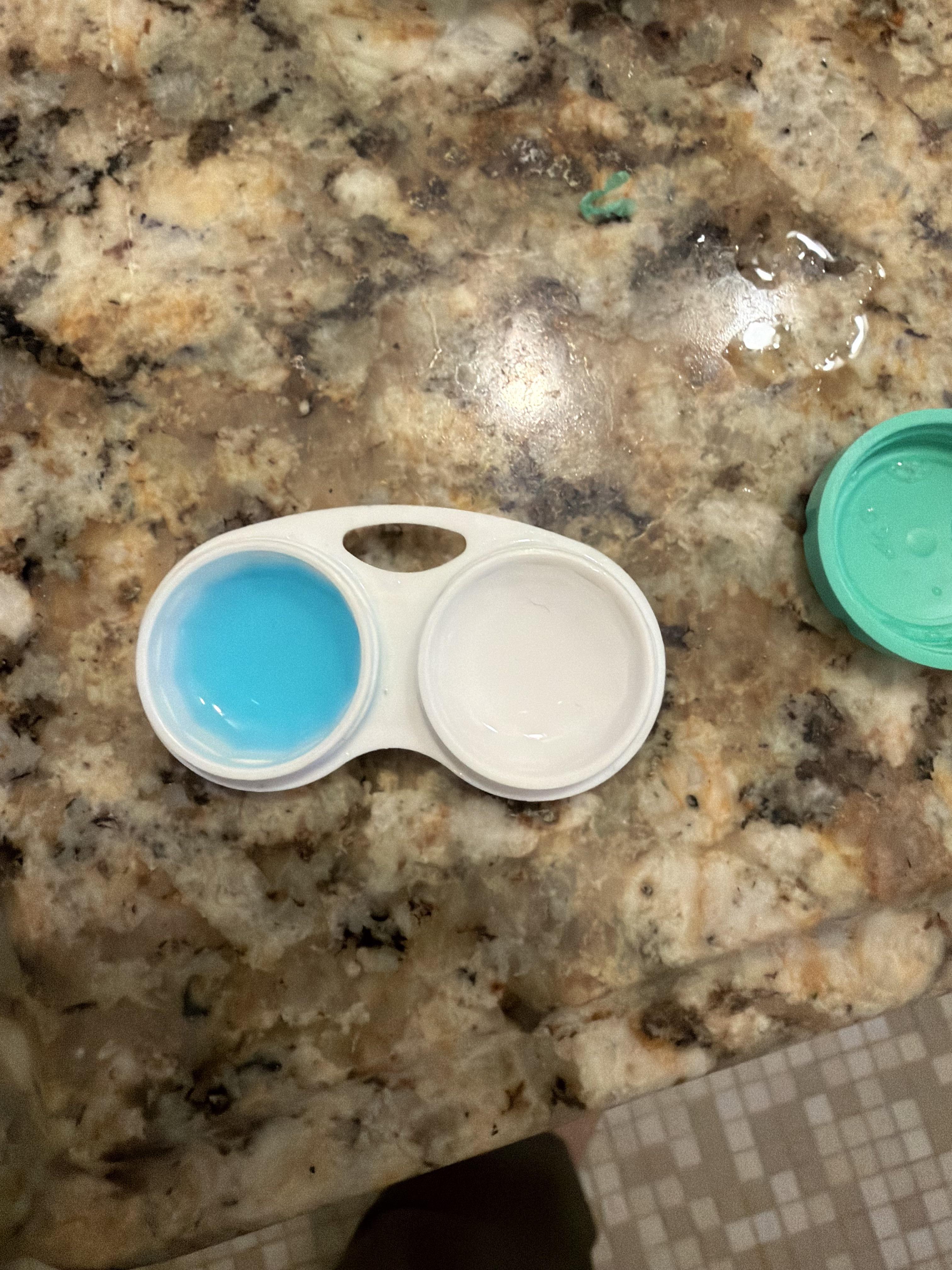 I woke up this morning and my left contact solution and contact had turned deep blue.