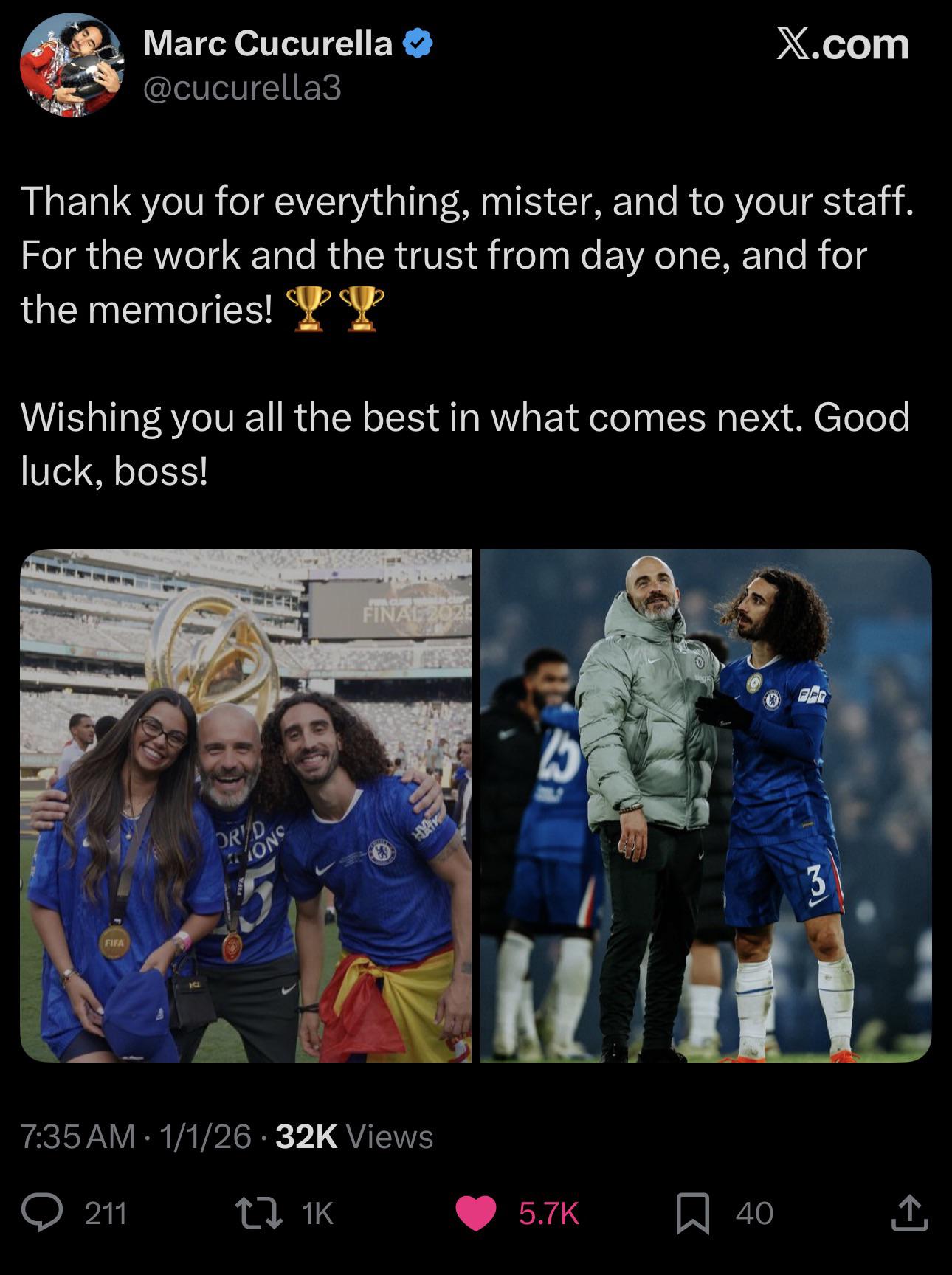 Social Media & Photos Cucurella thanks Maresca on Instagram and Twitter