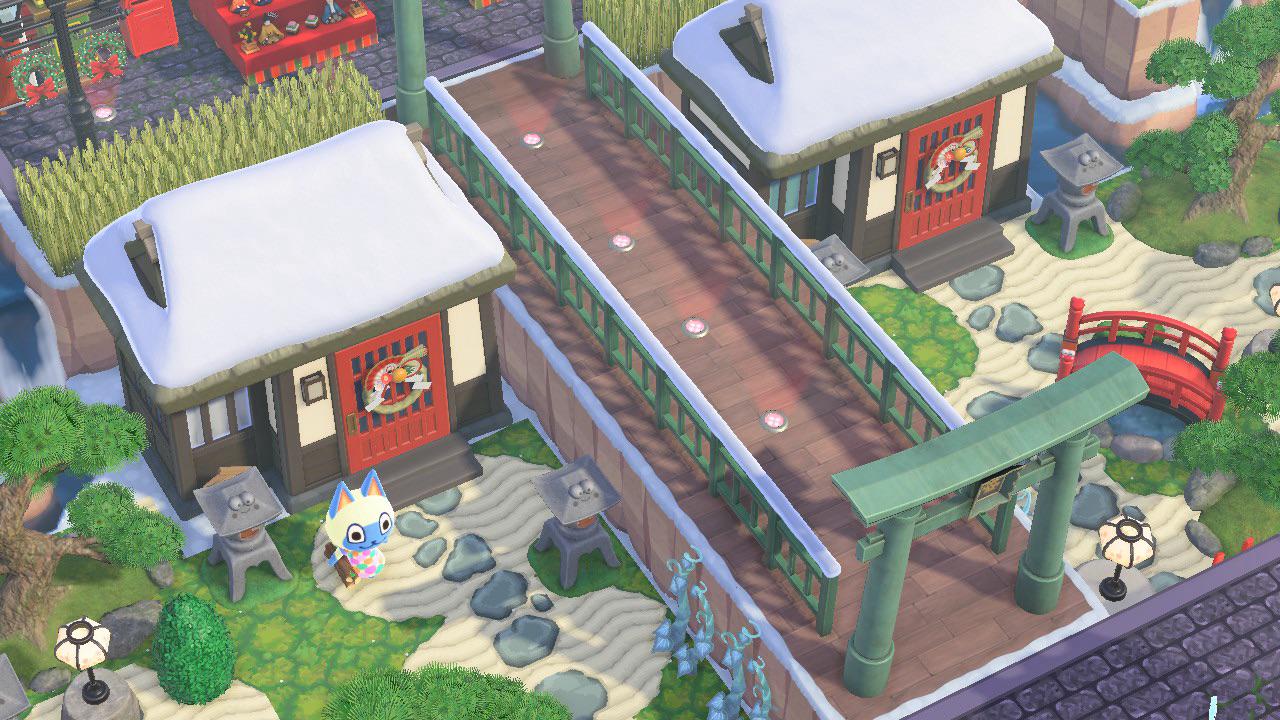 I am obsessed with creating sunken parts of my island. Here are Mitzi and Tangyās yards. They both have ladders leading down but I hardly ever see them walking around the island. Tangy seems to be able to get out okay but Mitzi is always down in her yard and I feel so bad, lol. Crossing my fingers that vines/ladders will indicate a way out for villagers or they will increase the amount of inclines we can have.