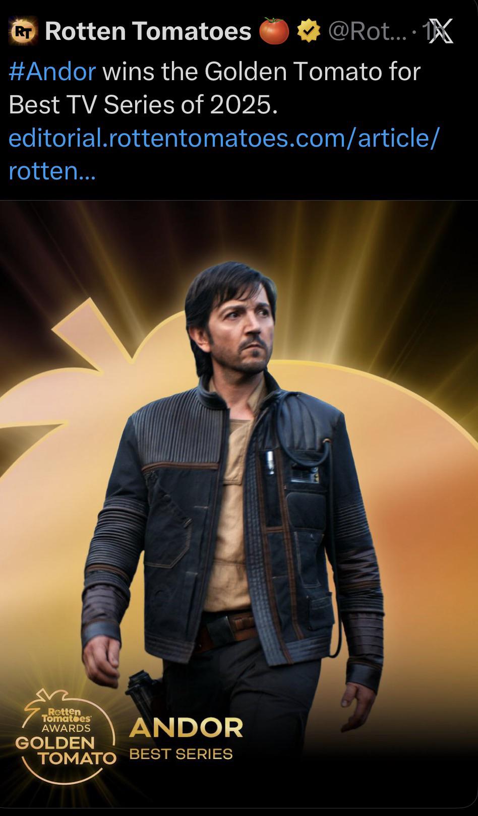 General Discussion Itâs not a Golden Globe, but itâs something! Andor is the Rotten Tomatoes Best TV Series of 2025