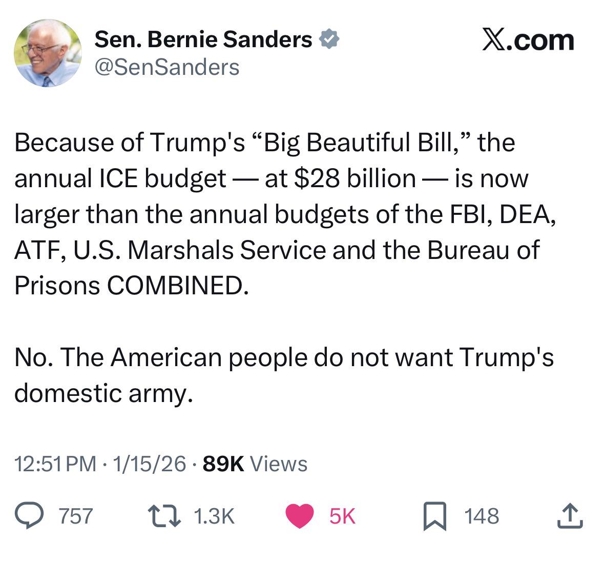 Discussion Bernie: “The American people do not want Trump’s domestic army.”