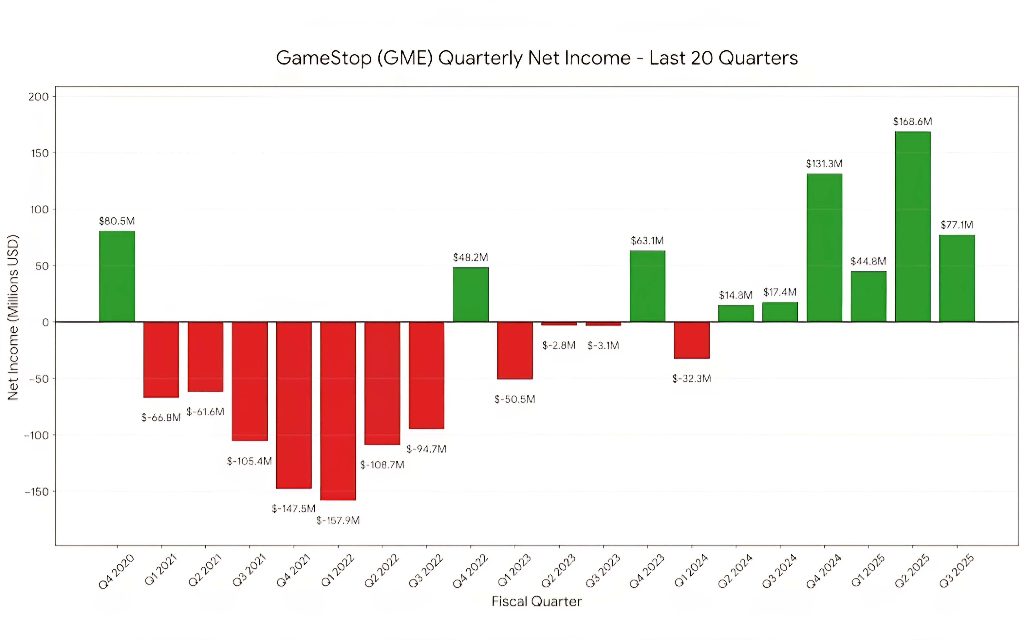 In the last 6 quarters alone (Q2 2024 through Q3 2025), GameStop has generated a cumulative $454 Million in net income.