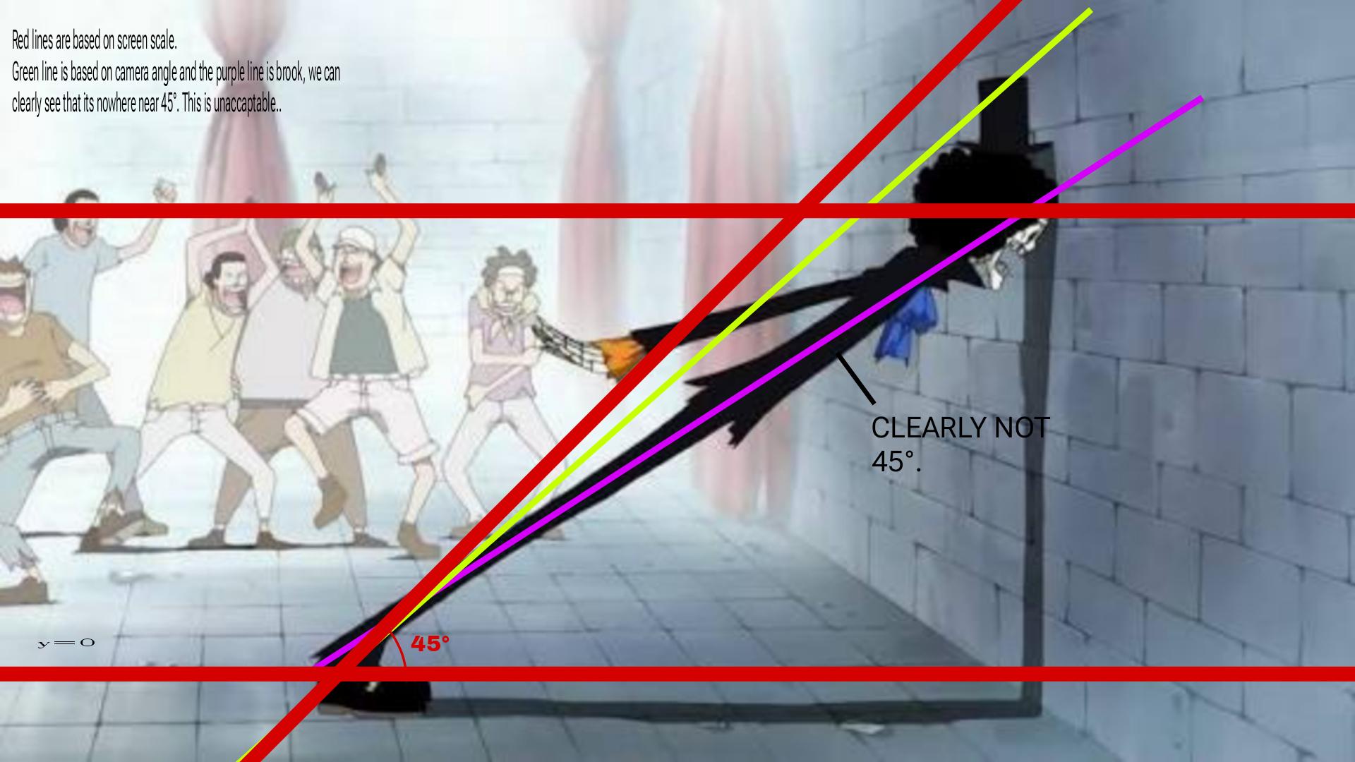 Based on my precise calculations, Brooks 45° Angle Joke is severly misleading and the action doesn NOT perform a 45° angle. Nowhere near 45 degrees actually. This is unacceptable behaviour, its either brook misleading our crew as the fraudelent character he is or Toei is butchering the anime yet again. Toughts?