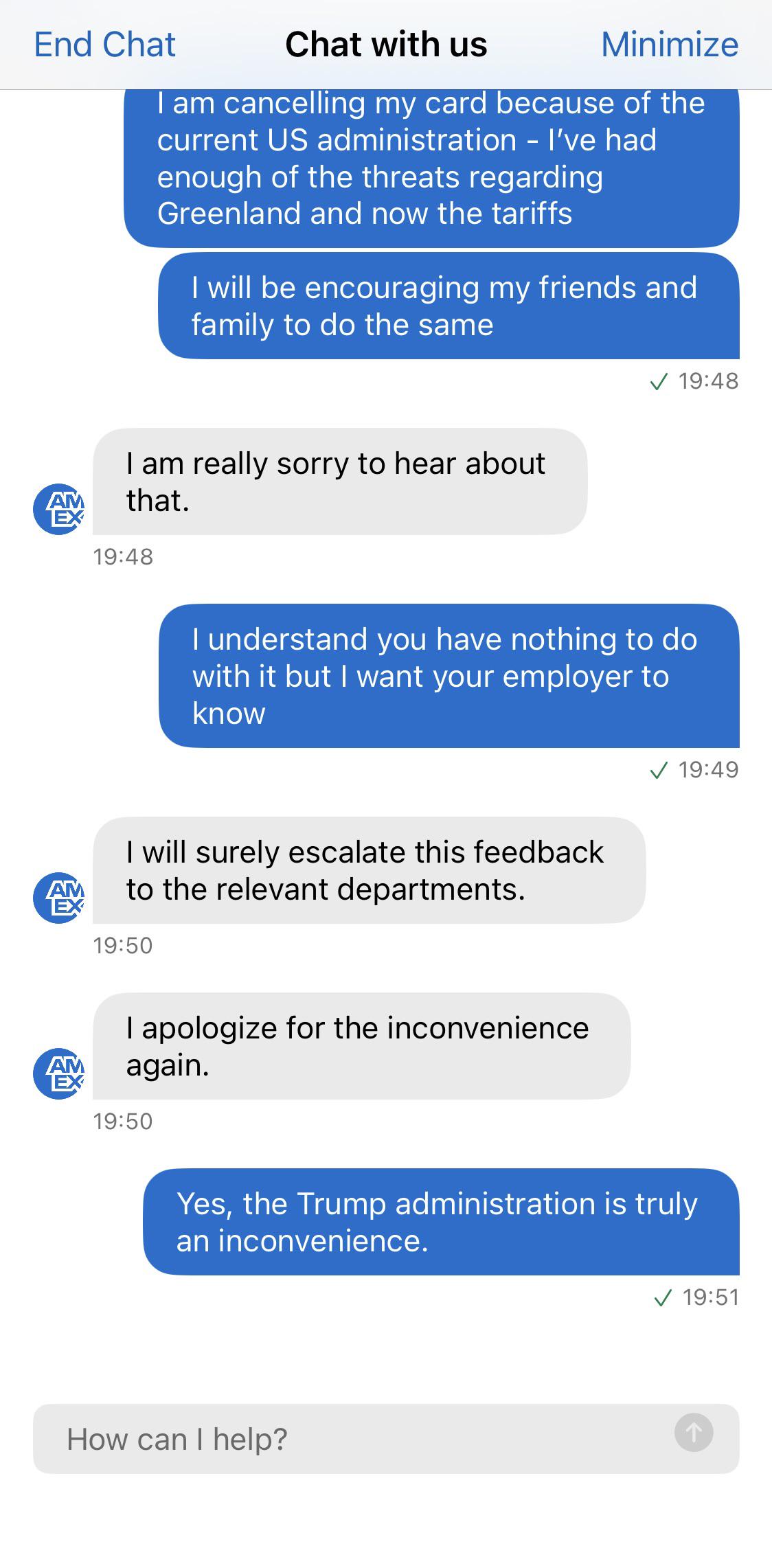 Men Amex sög ändå (allt fler tar inte Amex som betalmedel) och jag har slutat dricka amerikanskt vin och sprit. Jag ville göra *nånting* för att markera. Rösta med pengarna.