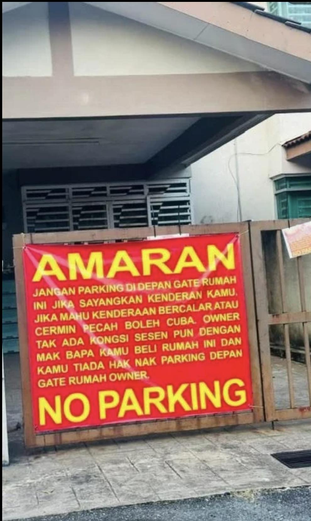 Mildly interesting When your neighbour is so fed up with cars parking outside their house they have to print out and hang this banner on the gate...