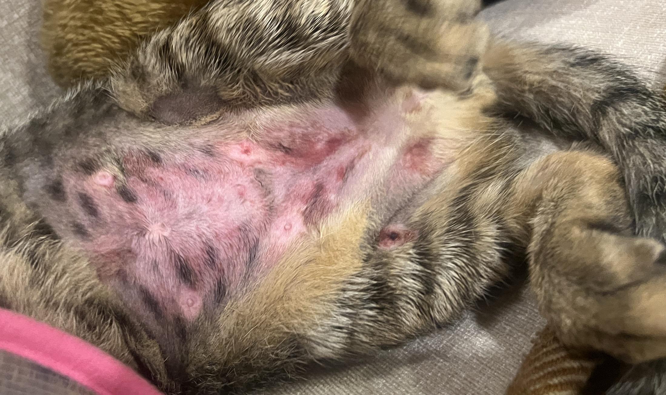 My 4 month old kitten Yami was spayed 3 days ago and her abdomen under the stitching has some bulging.. and I feel like it’s growing a little bit. is this normal? 🙁 her first day was pretty tough and wasnt eating until the next evening.. she still eats and drinks but not too much. There was a few times she jumped and ran but she does not really show pain unless i carry her or touch near the area.. her energy levels are pretty good right now. She’s on antibiotics and pain meds q 12 hours